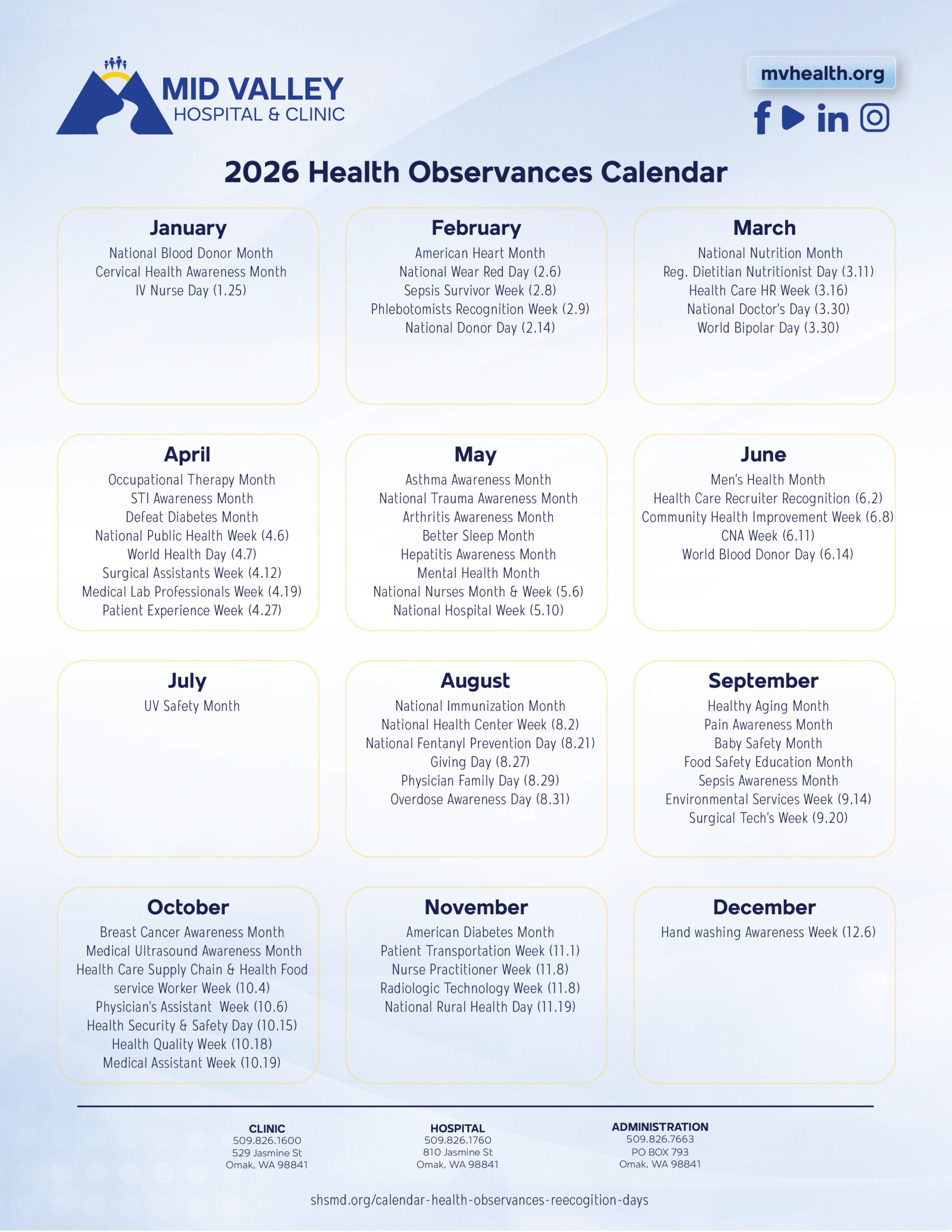 2026 Health Observances Calendar